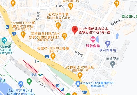 【地址】:251新北市淡水區學府路51巷3弄9號1樓(鮮花店旁)